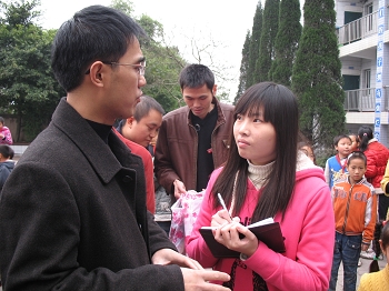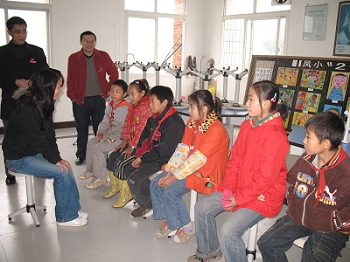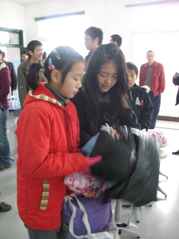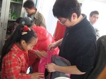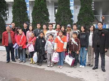 11月20日上午数理学院团委书记胡佳老师带领学生会部分成员瓶”添爱心活动前两个阶段募捐到的衣物和卖废旧瓶子所得的全部收入所买的礼物捐赠给了凤凰镇小学的六位贫困学生
