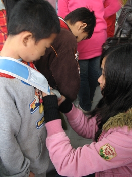 10点20分左右大家在虎溪校区北门集合乘车至陈家桥经两次转车到达凤凰镇小学经过与校方接洽一行人得以进入学校并在该校的科学实验室见到了接受捐赠的几名学生和该校的主要负责人看到孩子们以后大家非常热心地把带来的礼物送到每个学生的手中并为他们寻找适合的衣物受赠的学生都很开心并表示今后要更努力地学习争取成为一名优秀的学生活动过程中该校校长对我们的活动给予了大力的支持并予以肯定和赞赏该校其他同学也表现得非常热情他们用自己活泼的方式欢迎大家的到来,让在场的学生会成员们仿佛又回到了小学时代最后在双方相互的不舍中一行人乘车离开凤凰小学。