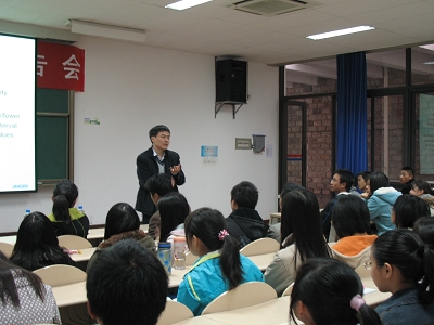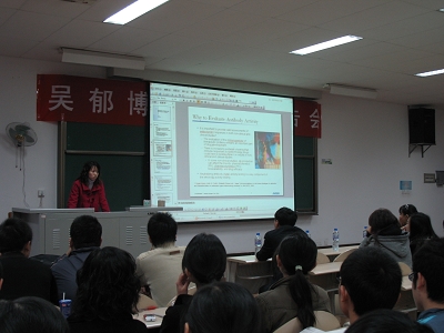 2008年11月23日中午1:30,吴郁博士学术报告会在虎溪校区DZ123教室准时召开。数理学院杨虎院长,07及08级辅导员杨媛媛老师、罗强老师,以及数理学院统计专业07及08级的同学们参加了此次的报告会。杨虎院长亲自担任本次报告会的主持,向大家简略地介绍了吴郁博士,并对她的到来表示了热烈的欢迎。