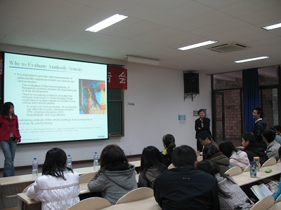 吴博士在报告中以全英文的PPT为说明,结合她的本职工作,将统计学在理论和实际工作中的核心部分简明扼要地讲授给大家。从一名统计专业毕业的学生到从事统计分析与数据处理方面的专业人员,吴博士对正处基础学习阶段的同学们表示,统计学作为一门文理兼具的学科,在社会工作中常常作为其他领域的辅助项目,为其做研究、分析和验证;理论固然有其枯燥无味的一面,但实践的过程恰恰是以理论为基础、为出发点的,因此基础阶段的学习显得尤为重要。