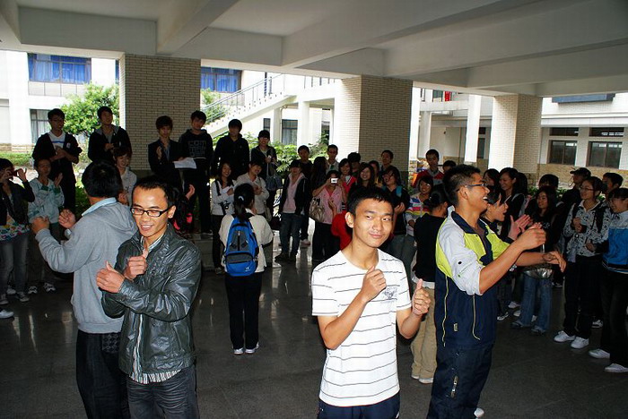 10月31日星期六,天空下着细雨,重庆大学虎溪校区东大门前聚集着来自数理学院09级团委学生会的部分同学,他们带着微笑和热情,前来参加重庆大学数理学院学生会主席团精心策划的素拓活动。