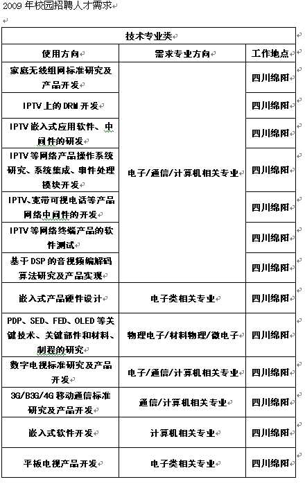 以上职位仅供参考,校园招聘详情请登陆www.changhong.com查询;